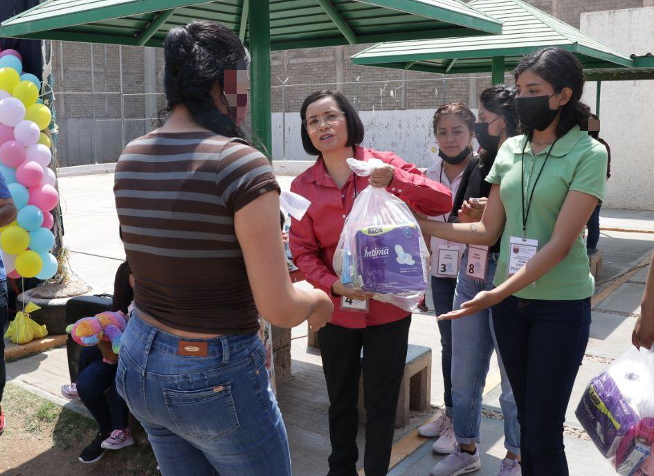 Durante el evento conmemorativo del Día de las Madres, por ser una fecha emblemática y representativa, la Presidenta de la CDHEZ y las Legisladoras hicieron entrega de productos de limpieza personal a las madres privadas de la libertad.