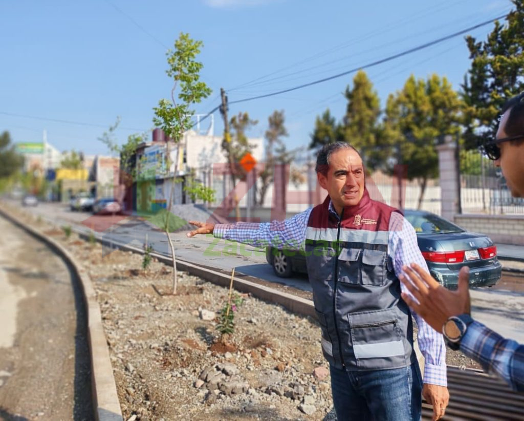 Arrancando en el camellón que la Avenida García Salinas, a la altura de donde se reparó la bóveda pluvial que pasa por debajo de dicha vialidad y que antes de est intervención las lluvias causaban hundimientos en la zona, el edil aseguró que se están tomando en cuenta la orientación de expertos de la UAZ para plantar diversas especies de ábroles.