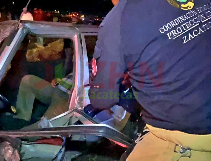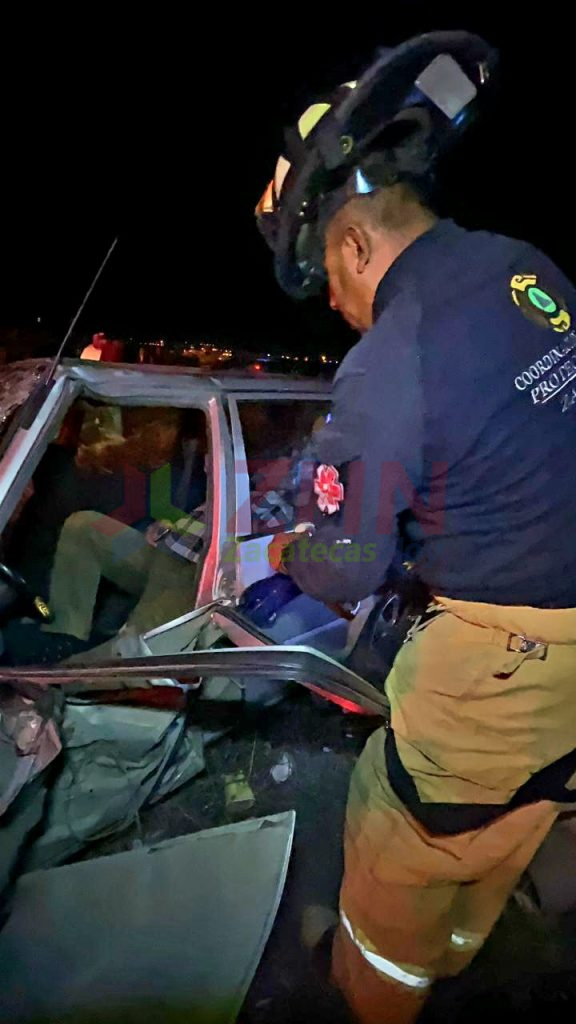 Al arribar al sitio, se confirmó la presencia de un vehículo Nissan Tsubame Datsun modelo 1998, color gris, con placas de Zacatecas, el cual había impactado de manera frontal. En el interior se encontraba el conductor, identificado como Damián “N”, de 64 años, quien quedó atrapado entre los restos del automóvil.