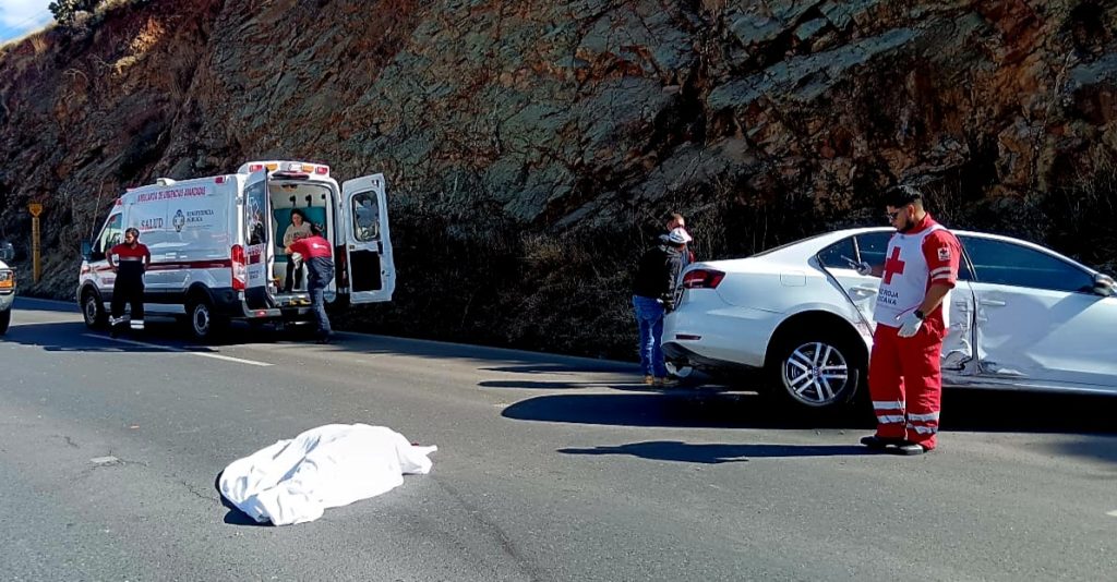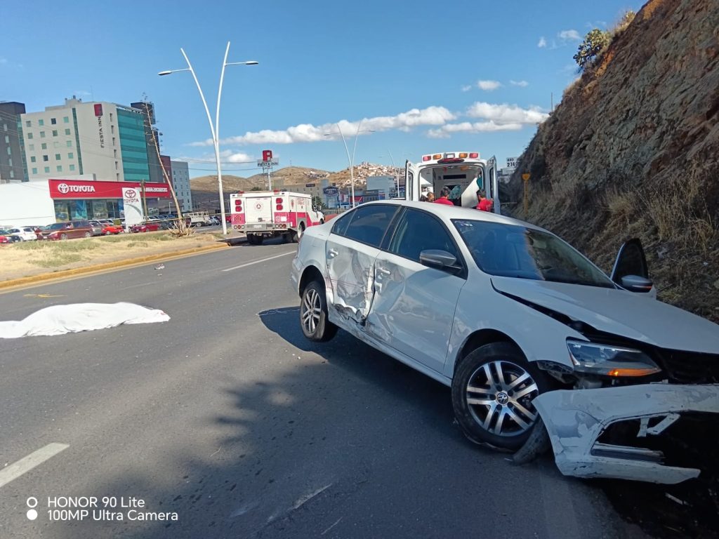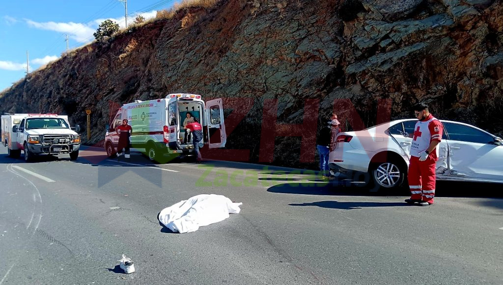 Zacatecas, Zac.— Efectivos de la Coordinación Estatal de Protección Civil (CEPC) atendieron la tarde de este martes un accidente vial múltiple tras un reporte recibido vía radio del Sistema de Emergencias 9-1-1, en el que lamentablemente los dos tripulantes de una motocicleta perdieron la vida en el lugar.