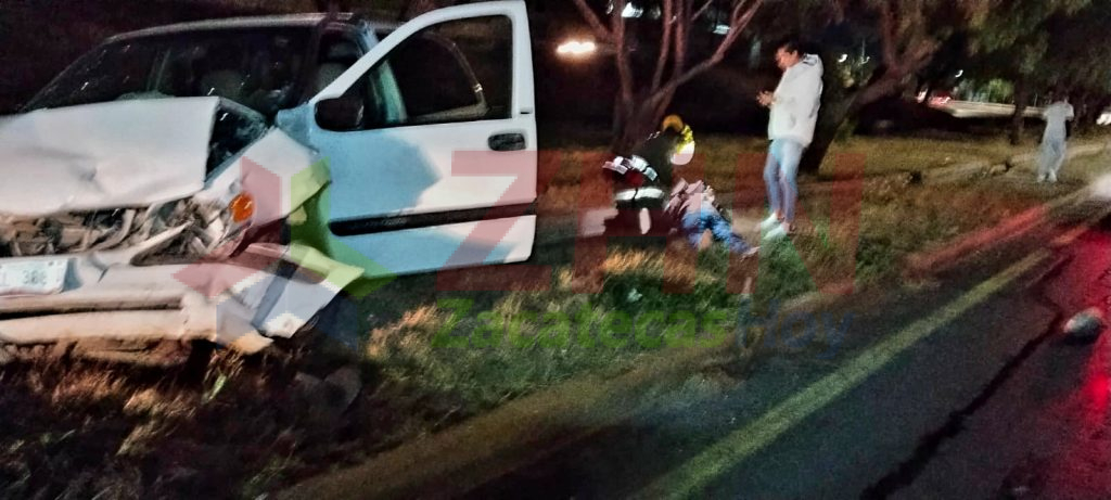 Guadalup, Zac.— Rescatistas y paramédicos de la Coordinación Estatal de Protección Civil (CEPC) atendieron la madrugada de este domingo un choque frontal entre dos vehículos ocurrido sobre el bulevar López Portillo, a la altura de la agencia Chrysler, con dirección al municipio de Guadalupe, tras un reporte recibido vía el Sistema de Emergencias 9-1-1.