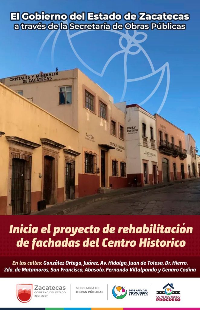 Zacatecas, Zac.- La administración estatal, encabezada por el Gobernador David Monreal Ávila, a través de la Secretaría de Obras Públicas, dio inicio al proyecto de rehabilitación de fachadas principales del Centro Histórico, con el firme propósito de preservar la belleza arquitectónica barroca y neoclásica que distingue a la ciudad y que le ha otorgado el reconocimiento como Patrimonio Cultural de la Humanidad.