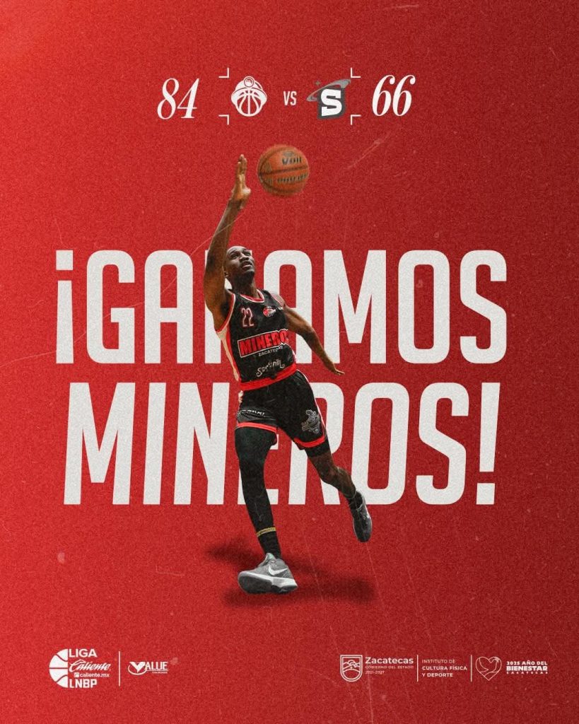 Zacatecas, Zac.- Con una destacada actuación de todos los jugadores y con el aliento de la mejor afición del país, los Mineros de Zacatecas barrieron la serie ante Santos del Potosí, al ganar 84-66 el duelo de la fecha 12 de la Temporada 2025 de la Liga Caliente LNBP.