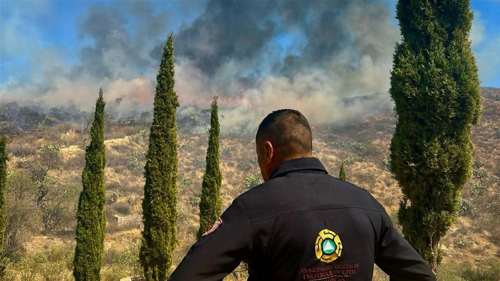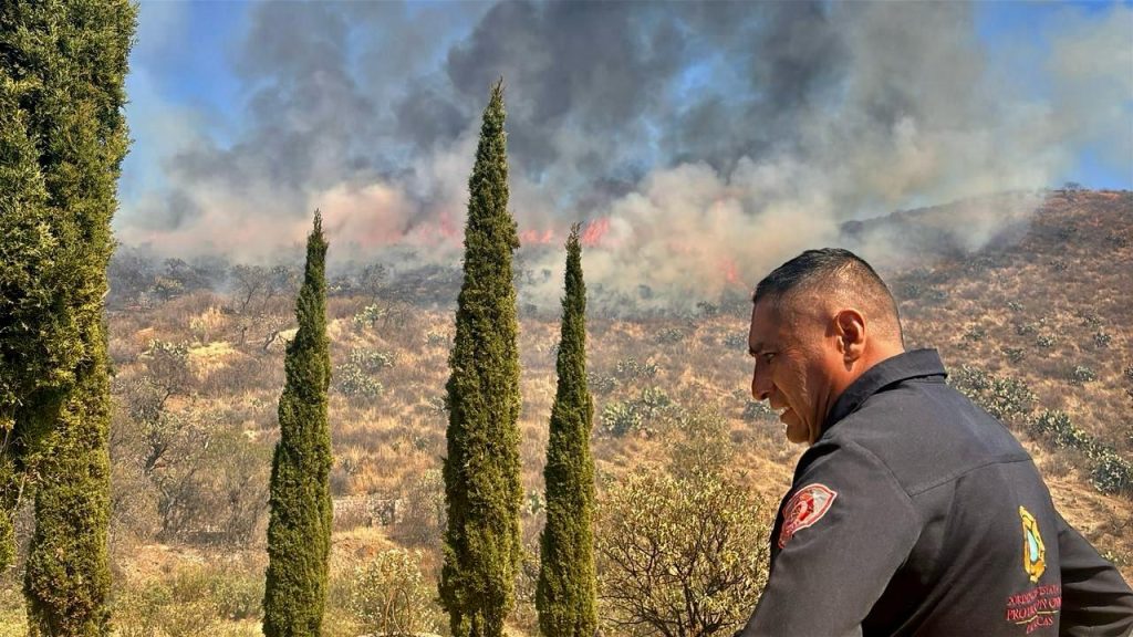 Zacatecas, Zac., 24 de febrero de 2025. – Este lunes al mediodía, un incendio forestal de gran magnitud se desató en un terreno de 30 hectáreas de hierba seca, ubicado detrás de la Mina San Bernabé, en la carretera a Vetagrande. Bomberos y rescatistas de la Coordinación Estatal de Protección Civil (CEPC), liderados por el jefe de Bomberos Jorge Gallardo Álvarez, acudieron al lugar para combatir las llamas.