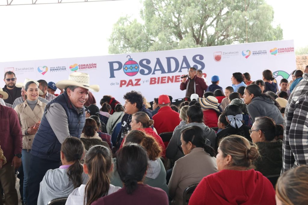 Más tarde, el Gobernador David Monreal y su equipo de trabajo se dirigieron a la comunidad Altamira para llevar los beneficios de las Posadas de la Paz y el Bienestar, con paquetes alimentarios, juguetes y regalos para las niñas y los niños, así como obsequios para las mujeres y hombres de la localidad.