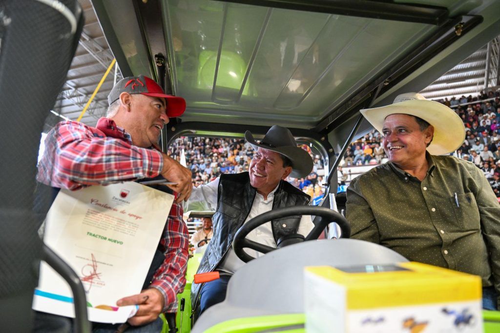Zacatecas, Zac.- Entre los históricos apoyos que ha brindado el Gobernador David Monreal Ávila a campesinos y ganaderos de Zacatecas, destacan Javier Carrera Soto, del municipio de Tepetongo, y Eliseo Ávila Hernández, de General Enrique Estrada, quienes fueron los afortunados ganadores de los dos tractores nuevos que rifó el mandatario durante la Cuarta Expo Feria Agropecuaria Estatal 2025.