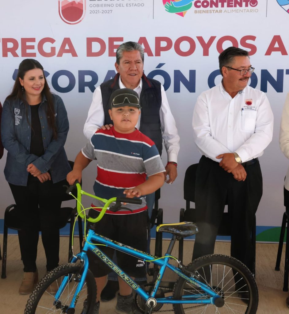 Además de llevar los paquetes alimentarios, juguetes y regalos a todas las niñas y los niños de El Vergel, el Gobernador David Monreal Ávila también rifó tabletas electrónicas y bicicletas.