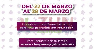 Zacatecas, Zac.- Dentro de las actividades que comprende la Agenda del Progreso, que impulsa el Gobernador David Monreal Ávila, la Secretaría de Salud (SSZ) implementará en Zacatecas las actividades de la Semana Nacional de Vacunación Antirrábica, del 22 al 28 de marzo. Durante dicho periodo, se instalarán módulos para vacunar …