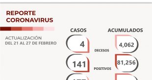 – En la semana reciente, la Secretaría de Salud reportó 177 pacientes recuperados, 141 nuevos contagios y cuatro fallecimientos Zacatecas, Zac.- Al registrar 177 pacientes recuperados durante la semana del 21 al 27 de febrero de 2023, en Zacatecas se redujo a 195 la cifra de casos activos de COVID-19. …
