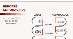 ▪️Del 24 al 30 de enero, se registraron 356 nuevos contagios, así como nueve fallecimientos a causa del SARS-CoV-2 ▪️Se tiene un acumulado 75 mil 783 recuperados, 80 mil 525 contagios, 4 mil 045 fallecimientos y actualmente hay 697 casos activos Zacatecas, Zac.- La Secretaría de Salud de Zacatecas (SSZ) …