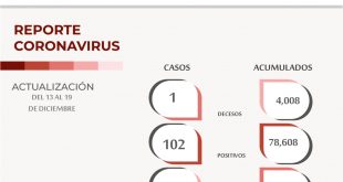 Del 13 al 19 de diciembre, se contabilizan 102 nuevos casos de Coronavirus Zacatecas, Zac.- Durante la última semana, se recuperaron 37 zacatecanas y zacatecanos de Covid-19, cuyas edades se dividen de la siguiente manera: cuatro menores de edad, nueve en el rango de 20 a 29 años, 13 de …