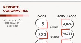 – Del 10 al 16 de enero de 2023, se contabilizaron cinco decesos por complicaciones causadas por el virus Zacatecas, Zac.- La Secretaría de Salud de Zacatecas (SSZ) informó que, del 10 al 16 de enero de 2023, contabilizó 380 nuevos casos de COVID-19, a 125 personas recuperadas y cinco …