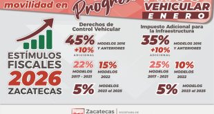 -Los estímulos fiscales 2026 brindan facilidades a las y los contribuyentes y fortalecen el orden, la prevención y el bienestar-El pago puede realizarse en línea a través del Portal Tributario o de forma presencial en oficinas y centros de pago autorizados Zacatecas, Zac.- El Gobierno encabezado por el mandatario David …