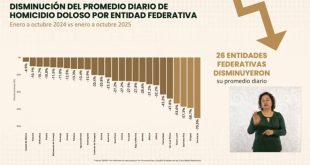 ▪️Encabeza la lista de los 26 estados que más redujeron el promedio diario de este delito de enero a octubre de 2025, en comparación con el mismo periodo en 2024▪️En octubre de 2025 se registraron cuatro homicidios dolosos en Zacatecas, ubicándose en el cuarto lugar más bajo a nivel nacional …