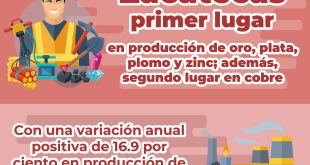 ▪️️ La entidad lidera la producción nacional de oro, plata, plomo y zinc, y ocupa el segundo lugar en cobre▪️️ El estado registró una variación anual positiva de 16.9% en oro y 8.3% en plata, con lo que supera a Sonora, Durango y Chihuahua, en crecimiento minero Zacatecas, Zac., 22 …