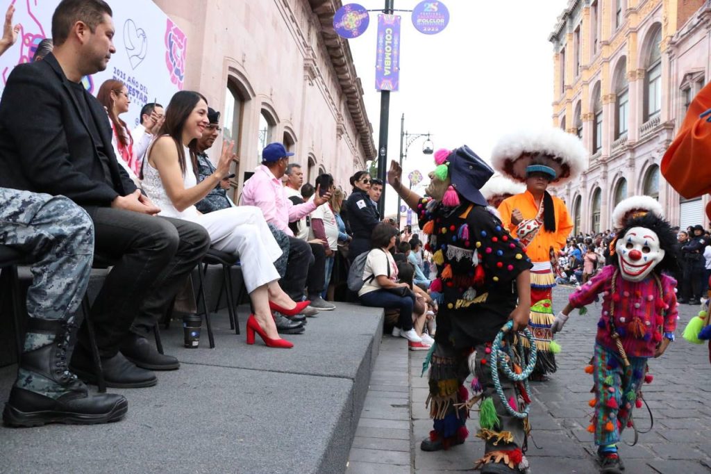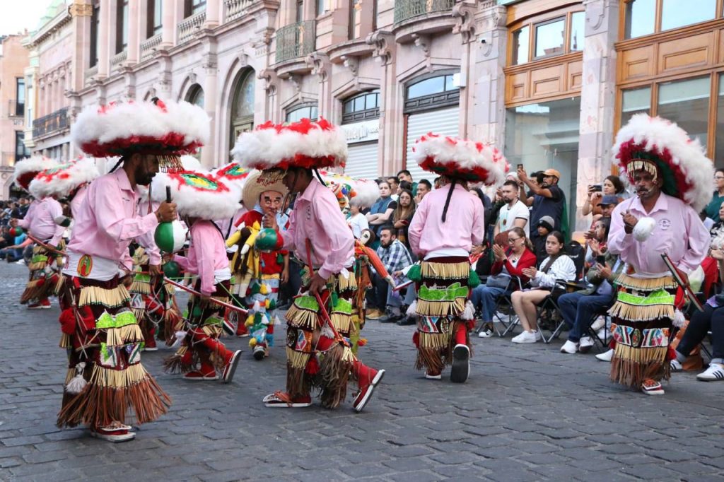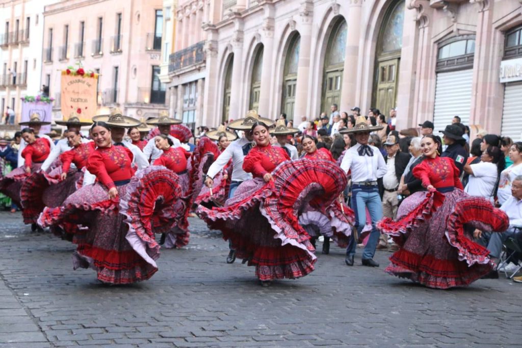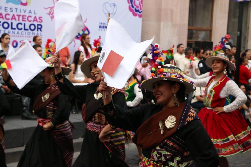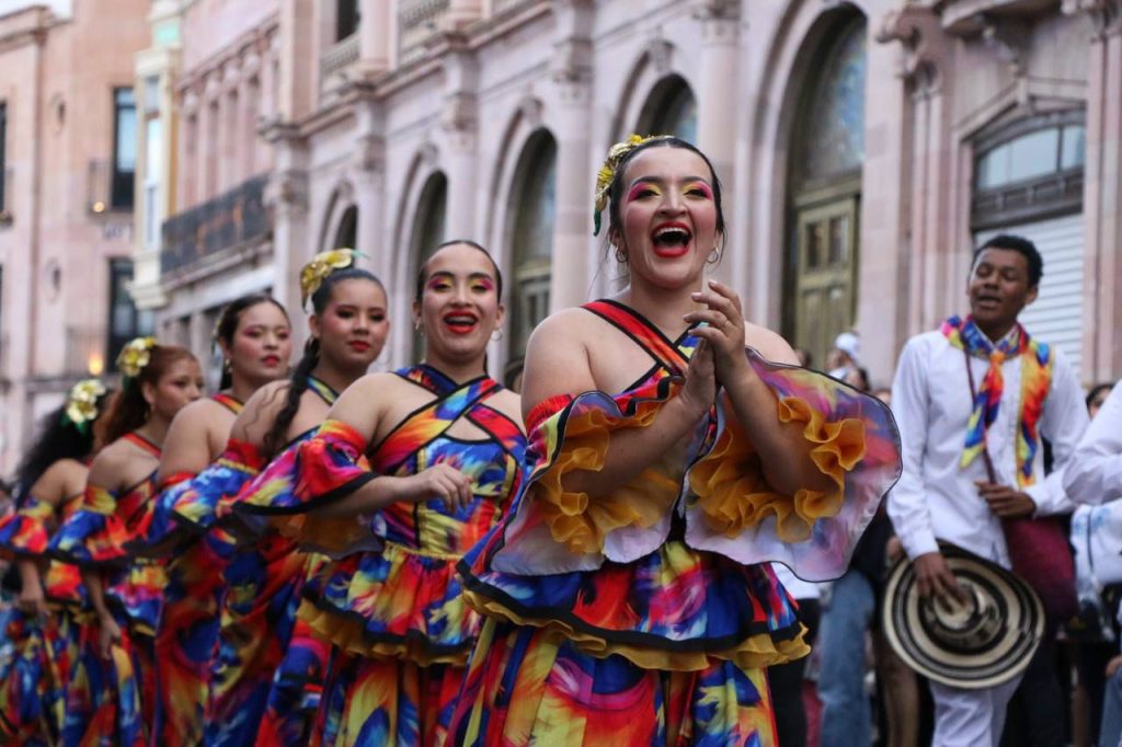 Para el acto de clausura, un contingente recorrió nuevamente las principales calles del Centro Histórico de la capital zacatecana para despedir las más de 80 actividades, con vistosos trajes típicos, bailes representativos de los pueblos de México, Bolivia y Colombia.