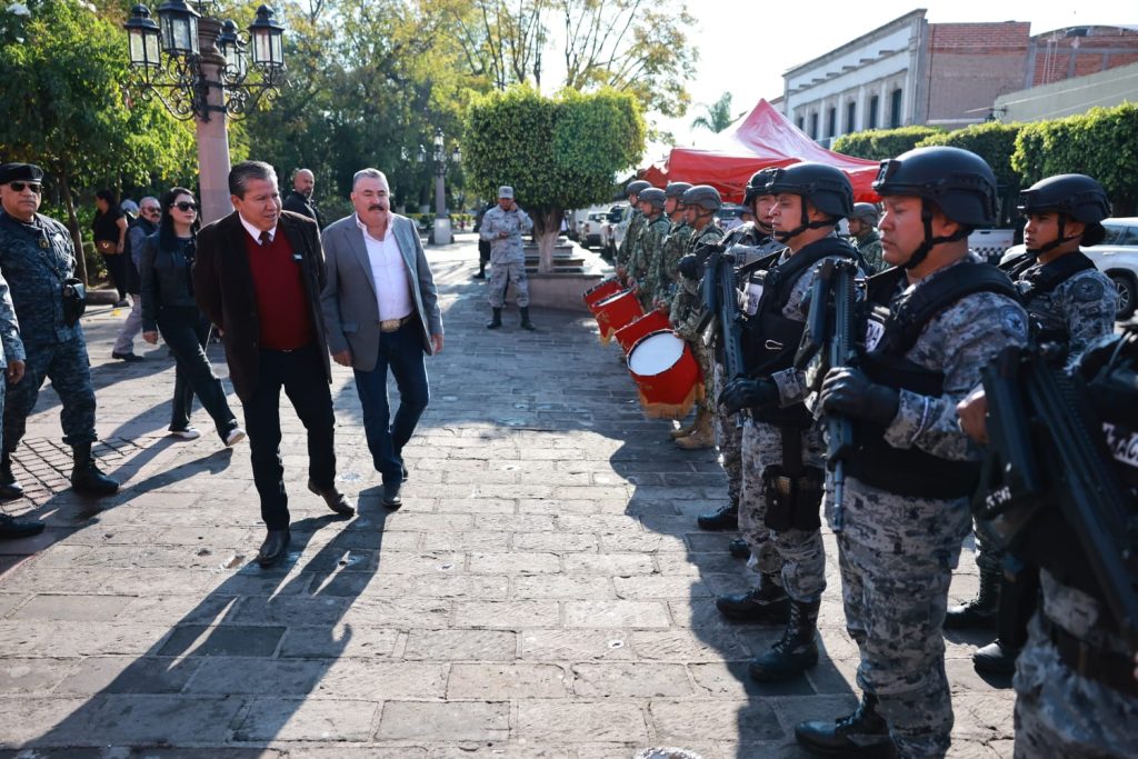 Tuvieron participación en el evento el Coordinador de la Guardia Nacional, Vicente Dimayuga Canales; el Jefe del Estado Mayor de la Décimo primera Zona Militar, Hugo Carmona Ortiz; el Secretario de Seguridad Pública del Estado, Arturo Medina Mayoral; el Secretario General de Gobierno, Rodrigo Reyes Mugüerza; el Delegado de la Fiscalía General de la República, Francisco Javier Esquivel Cruz.