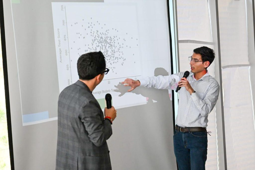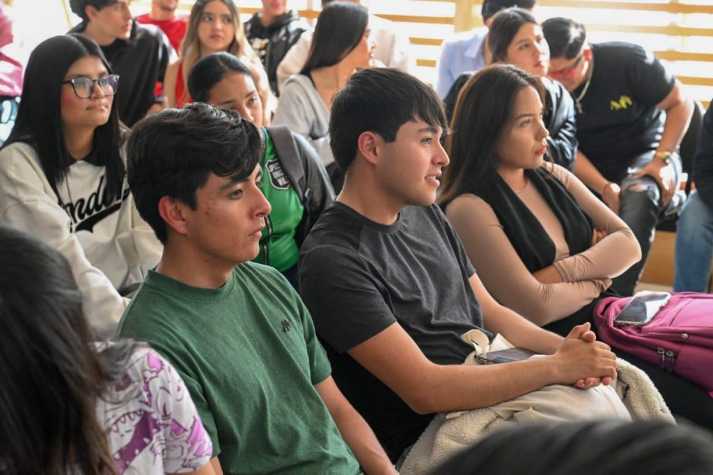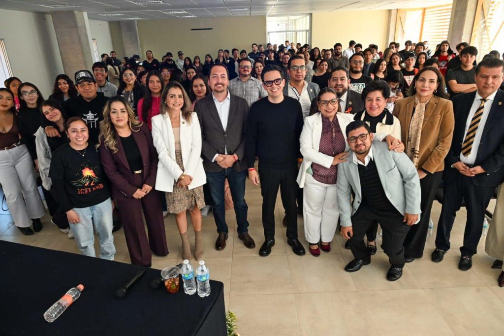 Ante estudiantes de derecho, con quienes interactuó durante toda su conferencia magistral, explicó cómo se construyen las políticas públicas a partir de estudios, en análisis de estadísticas y variables, los márgenes de error, con la finalidad de generar acciones que contribuyan a mejorar las condiciones de vida.