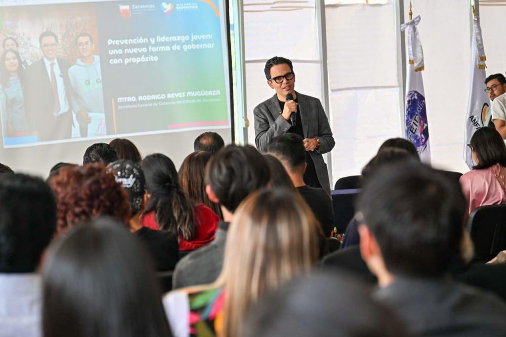 Zacatecas, Zac.- En su conferencia Prevención y Liderazgo Joven: una nueva forma de Gobernar con propósito, el Secretario General de Gobierno, Rodrigo Reyes Mugüerza, afirmó que el propósito de la política pública es construir pisos parejos y generar mayor igualdad.