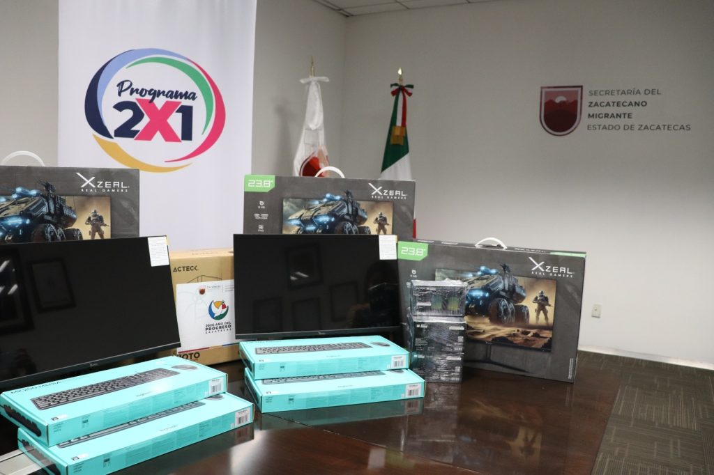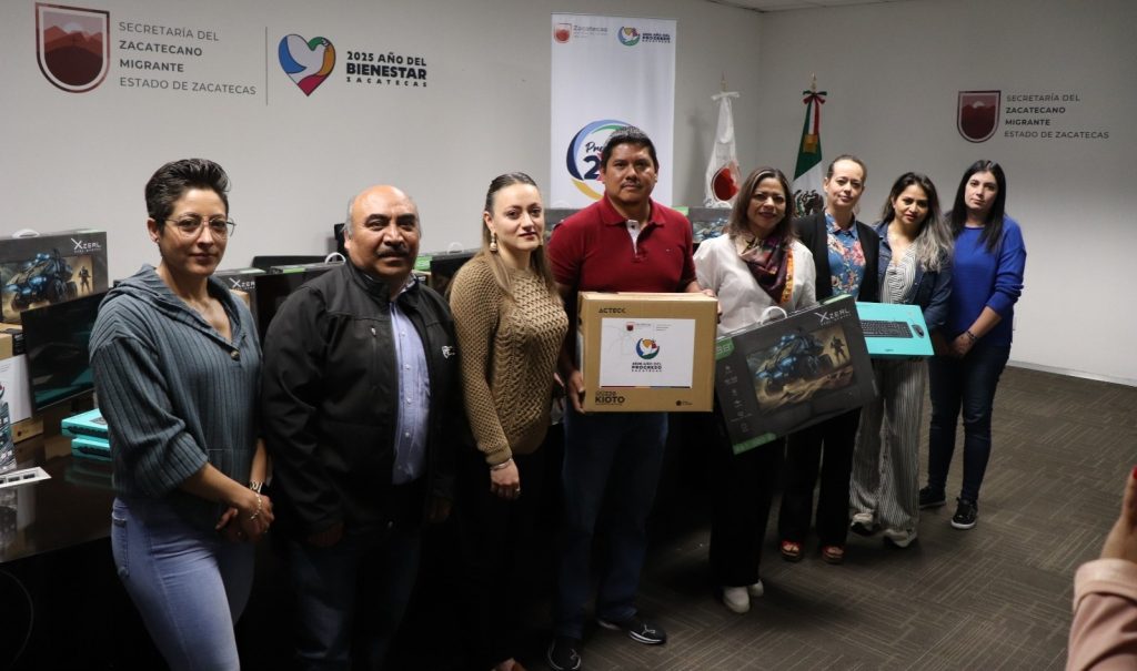En representación del titular de la Secretaría del Zacatecano Migrante (Sezami) Iván Reyes Millán, la Directora de Proyectos de Inversión con Migrantes, Silvia Ivonne Delgado Molina, hizo la entrega oficial de 10 computadoras de escritorio a la Directora del plantel, Gloria Vanessa Rodríguez; a la representante del club migrante, Lucía Sandoval, y a Gustavo Flores, presidente de la Sociedad de Padres de Familia.