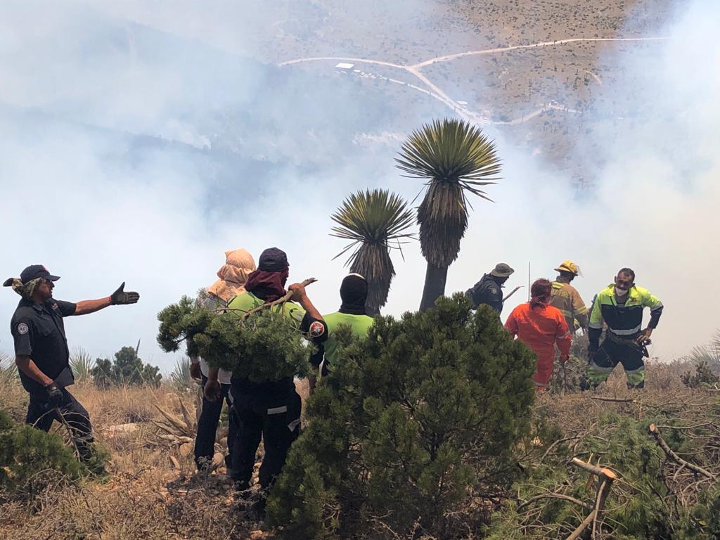 Mazapil, Zac.-  Brigadistas, bomberos, combatientes y voluntarios que acudieron a sofocar el incendio forestal en las inmediaciones de los municipios de Mazapil y Concha del Oro lograron el control del 50 por ciento del siniestro y la liquidación del fuego en un 40 por ciento en el Cerro El Temeroso de acuerdo al último informe que proporciono la Coordinación de Protección Civil Estatal y la Comisión Nacional Forestal (Conafor) al cierre de las actividades la noche de este lunes para controlar el fuego en la demarcación.
