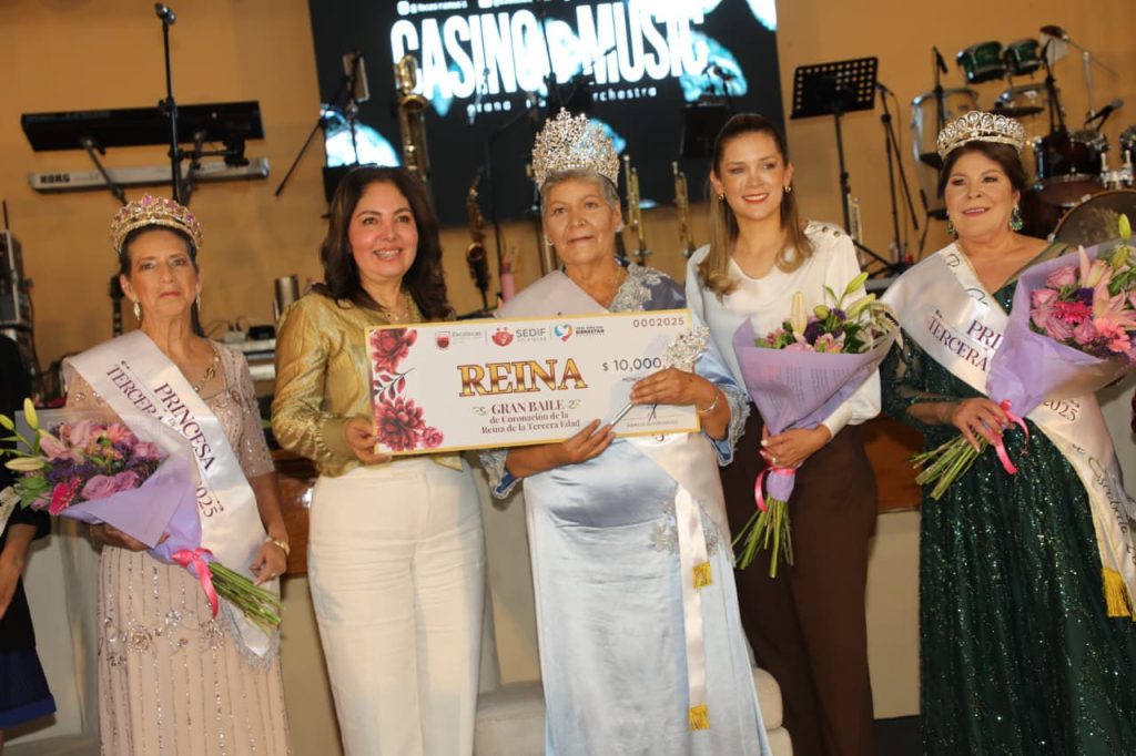 La ceremonia fue encabezada por la Presidenta Honorífica del Sistema Estatal para el Desarrollo Integral de la Familia (SEDIF), Sara Hernández de Monreal, quien, entre aplausos y ovaciones, coronó con gran orgullo a la nueva soberana: Ma. de los Ángeles Cordero, oriunda del municipio de Sombrerete, como Reina de la Tercera Edad del Estado 2025. A su lado, conformando la corte real, fueron distinguidas Martha Hernández Delgado, de Monte Escobedo, como Princesa I, y Baldid Castillo, representante de Tepechitlán, como Princesa II.