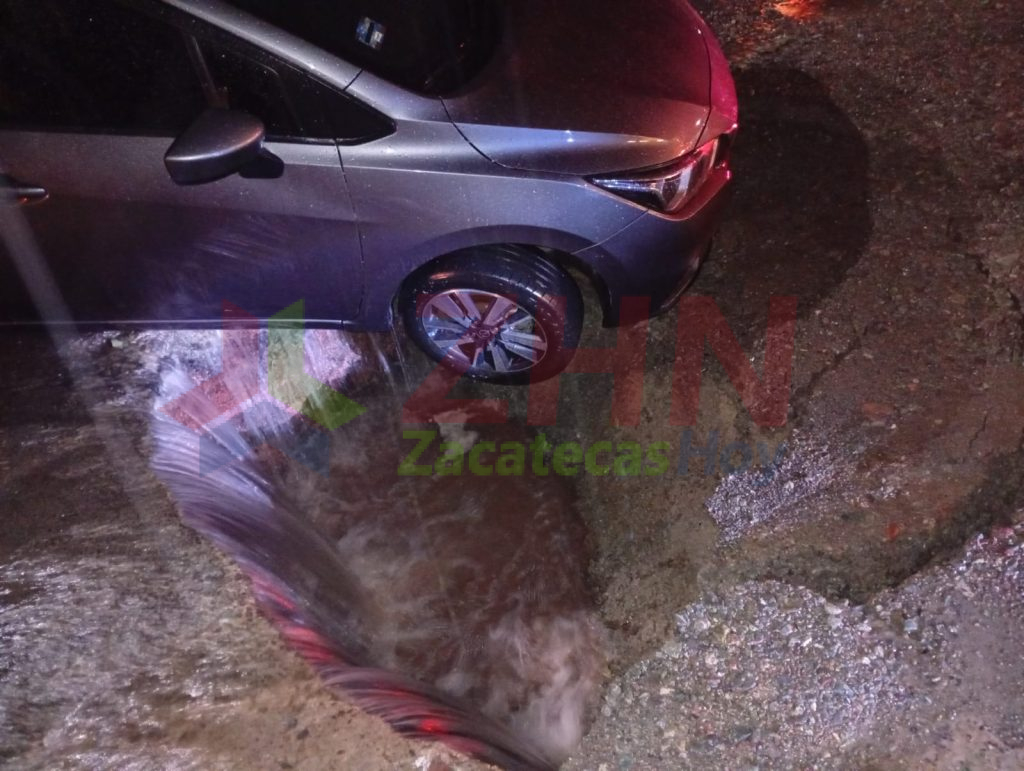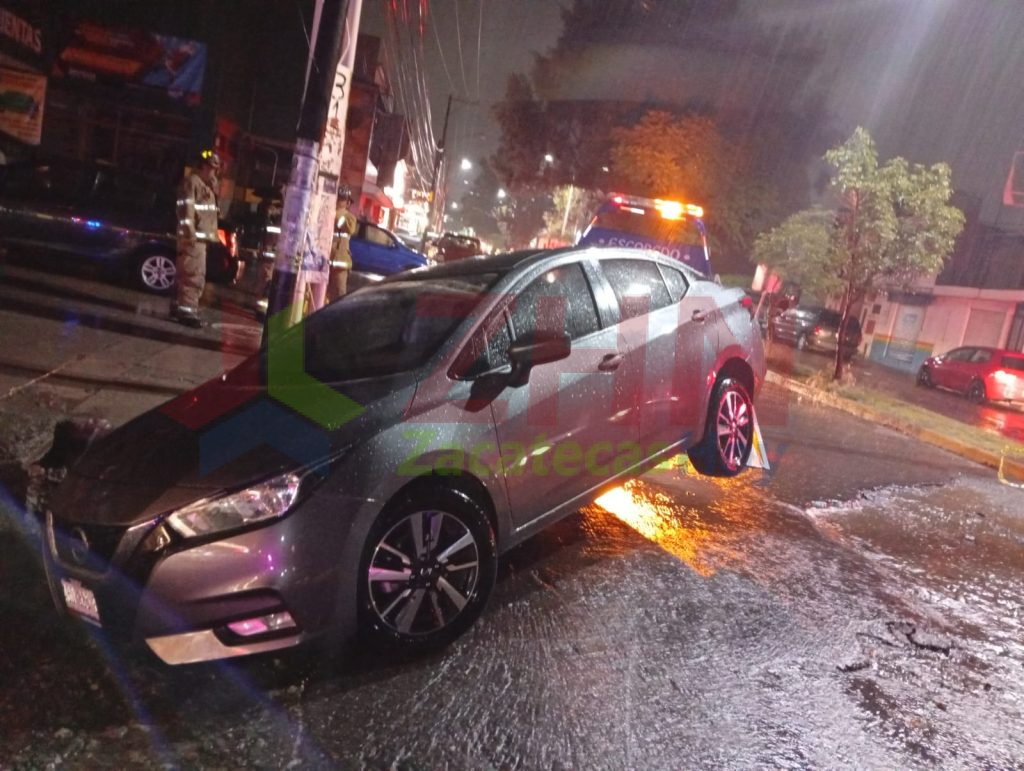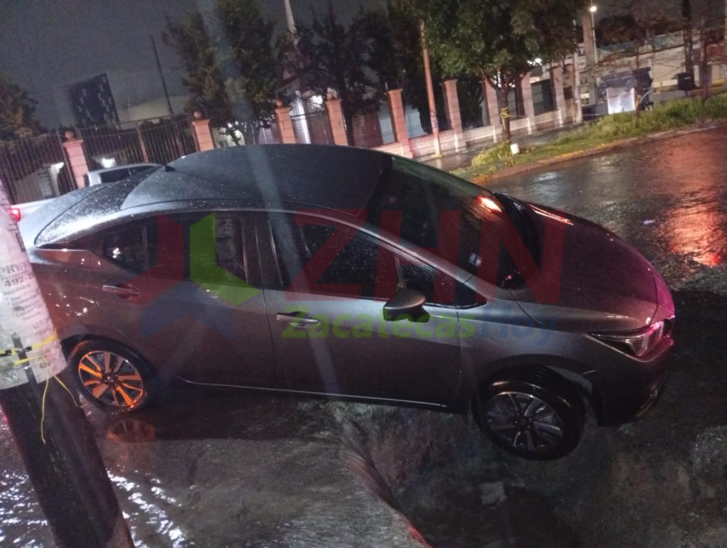 Al lugar acudió la unidad 3970, vuyos tripulantes confirmaron un hundimiento sobre la vialidad con un ancho aproximado de 2 metros y una profundidad de 1.5 metros. En el sitio, un vehículo Nissan Máxima de reciente modelo, con placas del estado de Aguascalientes, cayó dentro del socavón. El conductor se negó a proporcionar datos personales.