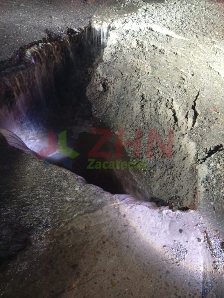 Guadalupe, Zac.– Efectivos de la Coordinación Estatal de Protección Civil (CEPC), bajo la dirección de Jorge Gallardo Álvarez y del Capitán Jesús Velázquez, atendieron un llamado del Sistema de Emergencias 911 tras reportarse la presencia de un nuevi socavón en la avenida García Salinas, frente a una casa de empeño First Cash.