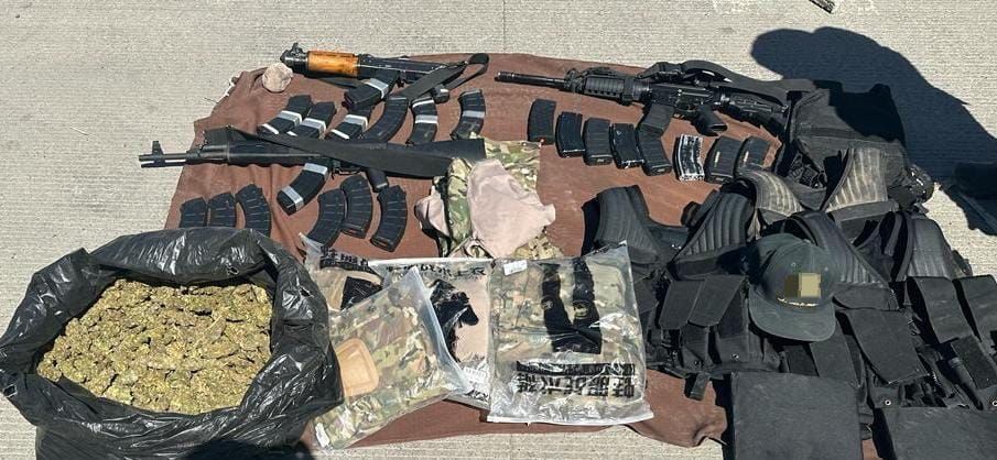Tras este operativo, se aseguraron tres armas de fuego, cargadores, cartuchos, aproximadamente 300 dosis de probable marihuana, un vehículo y estrellas metálicas conocidas como ponchallantas. Derivado de estos hechos, no se reportan personas lesionadas.