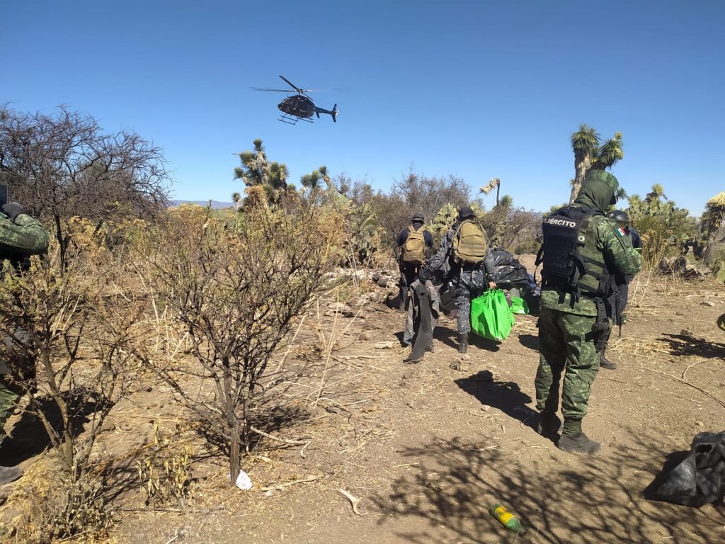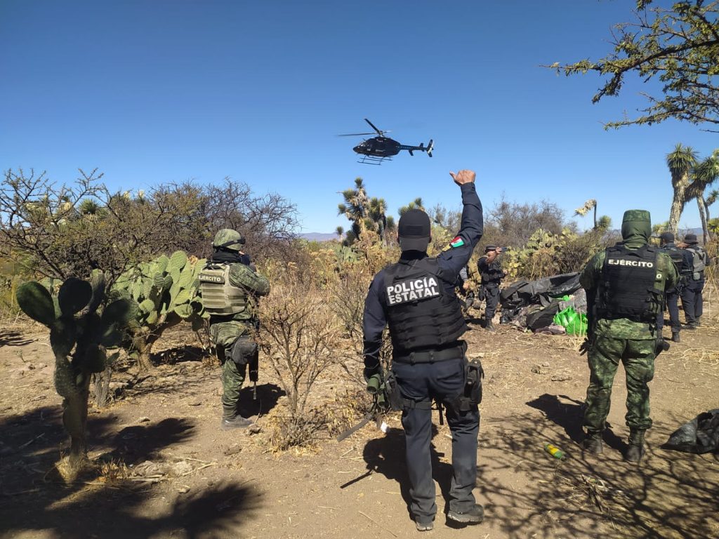 La ubicación de este sitio se dio luego de que las fuerzas de seguridad iniciaron un desplazamiento operativo por diversas brechas que van a la zona de El Magueyito, La Gavia y Tetillas, contando con el apoyo de vigilancia de la aeronave de la Secretaría de Seguridad Pública.