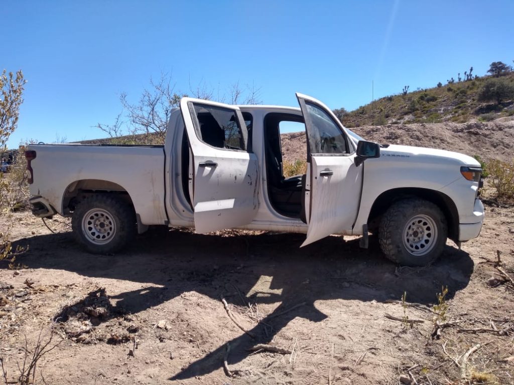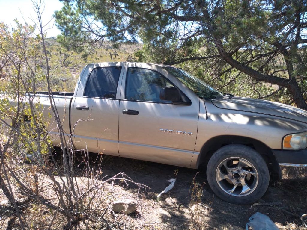 ▪️Localizaron tres vehículos tipo pick up y una camioneta cerrada, así como celdas solares, baterías, una antena de comunicación, equipo táctico, cartuchos, alimentos, entre otros indicios