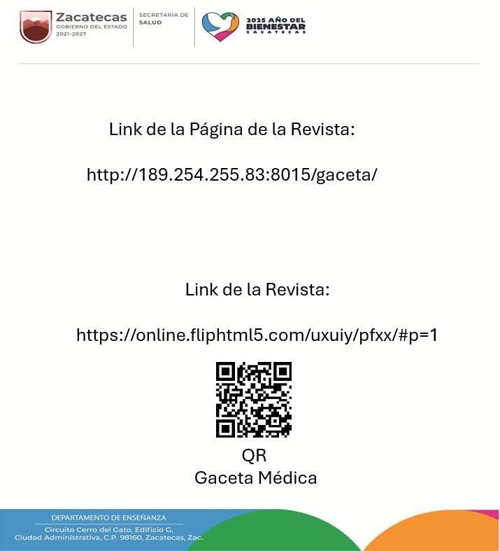 La Gaceta Medica de Zacatecas es un medio para comunicar y compartir conocimiento en sus lectores, quienes son en su mayoría profesionales de distintas áreas de la salud y, al mismo tiempo, podrán compartir artículos de diferente índole científica y académica.