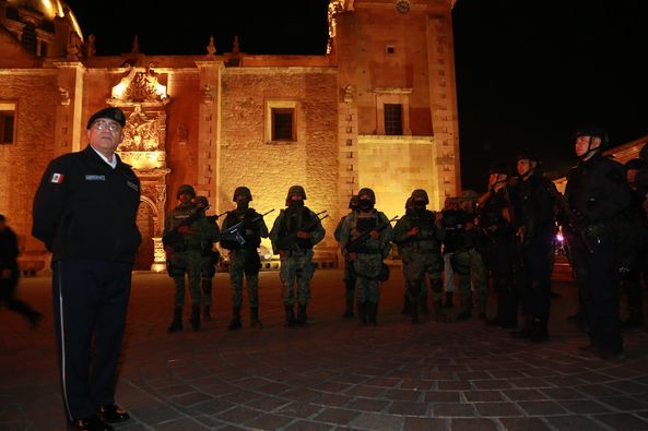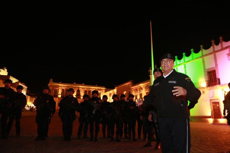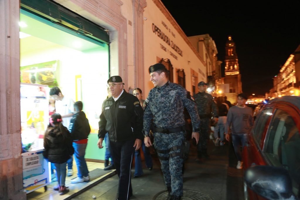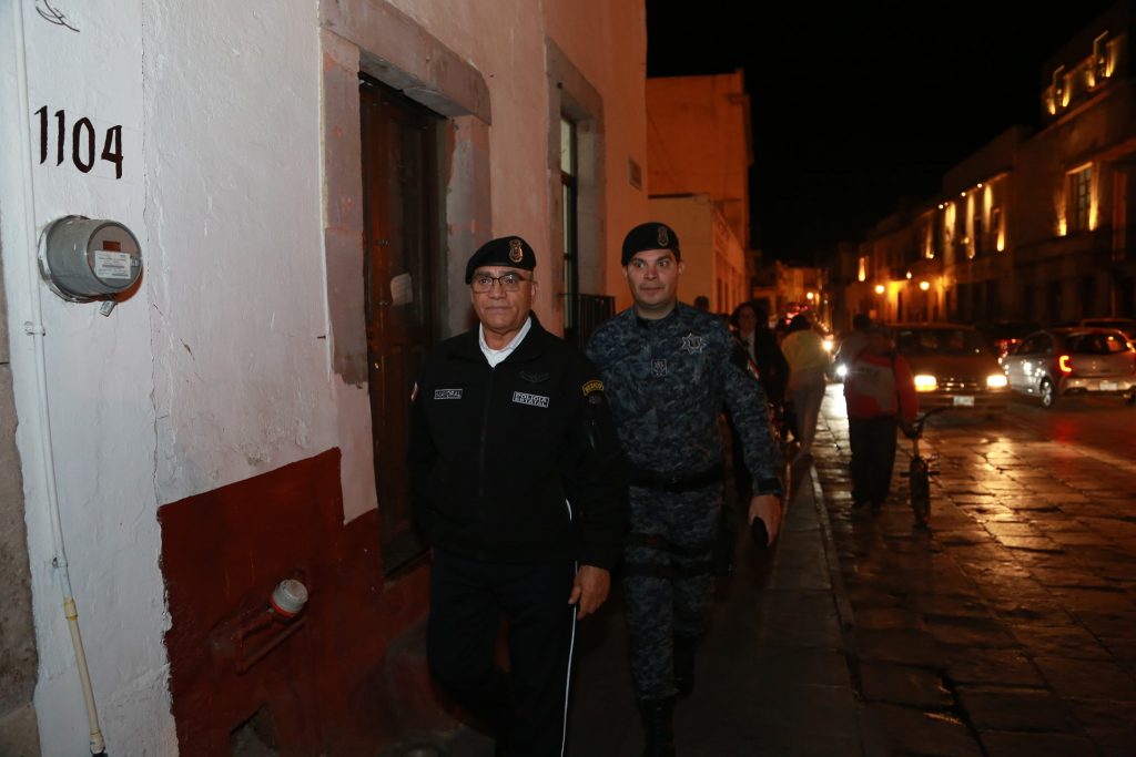 Zacatecas, Zac.- El secretario de Seguridad Pública de Zacatecas, General Arturo Medina Mayoral, encabezó la noche de este viernes un operativo de vigilancia por las principales calles y callejones del Centro Histórico.