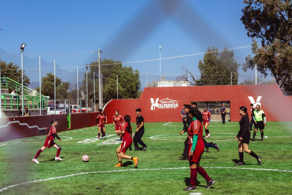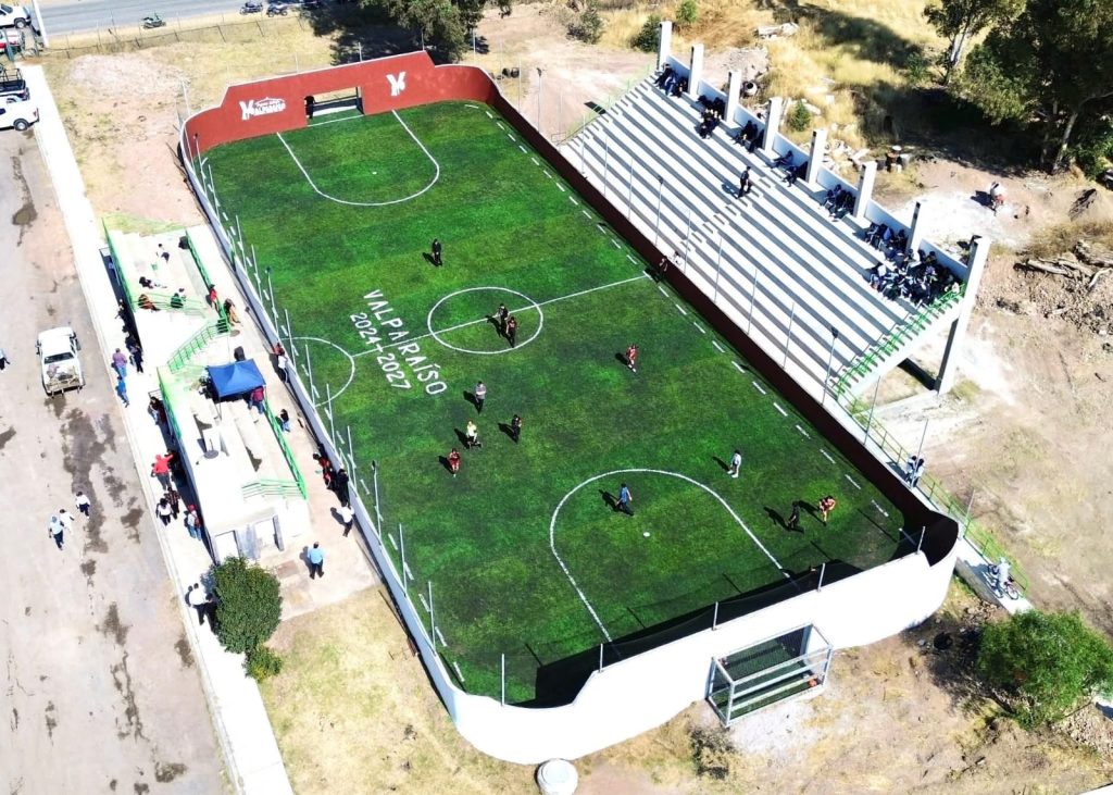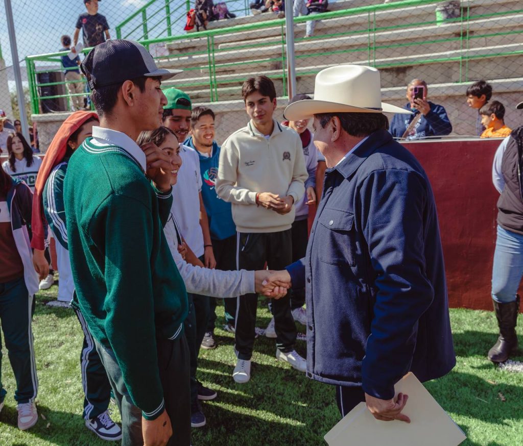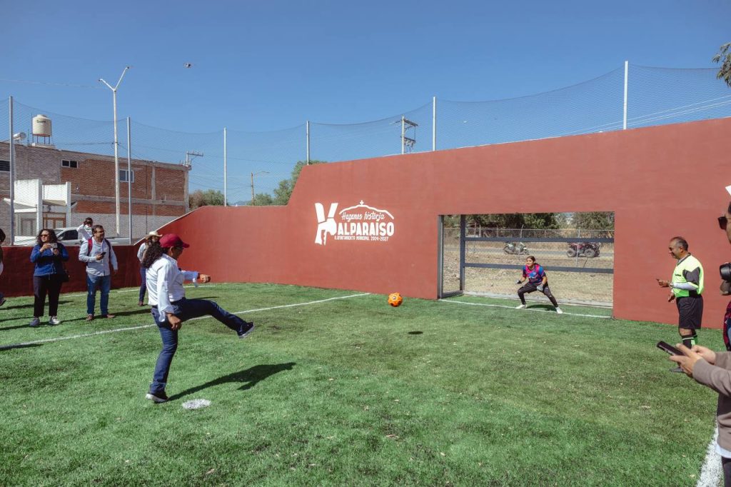 Acompañado por la Alcaldesa María Guadalupe Ortiz Robles, el mandatario estatal dio la patada inaugural y destacó que esta obra responde al compromiso de generar áreas dignas para la práctica deportiva y la convivencia familiar, especialmente para niñas, niños y jóvenes del municipio.