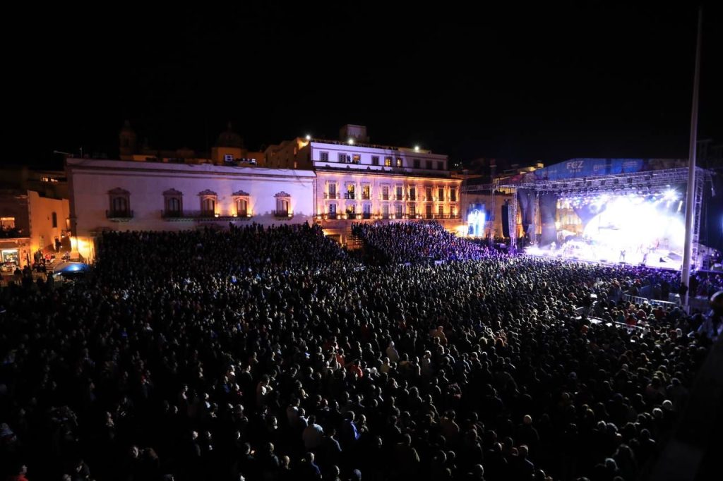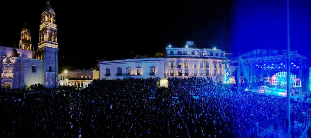 Zacatecas, Zac.- Con ritmos y temas de décadas pasadas, notas de júbilo con saxofón, percusiones y extraordinarias voces de dos icónicas agrupaciones La Sonora Santanera y La Maldita Vecindad fueron los elementos perfectos para convertir a la Plaza de Armas, foro principal del Festival Cultural de los zacatecanos, en una gran pista de baile, con la estelar actuación de La Vecindad Santanera.