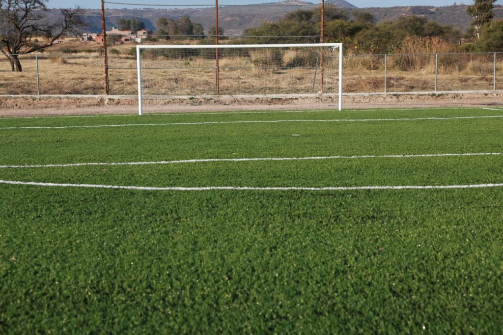 El proyecto beneficia de manera directa a 16 mil 814 personas (8 mil 715 mujeres y 8 mil 099 hombres), con la construcción de plataforma de base hidráulica, aplicación de riego de impregnación, instalación de sistema de drenaje con tubería PVC, colocación de guarniciones perimetrales, instalación de pasto sintético híbrido de 45 milímetros, equipamiento con porterías y bancas para jugadores y árbitros.
