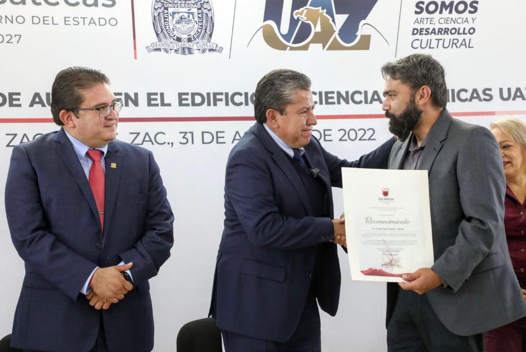 Cabe señalar que el mandatario también entregó un reconocimiento a la UAZ por su entrega, compromiso y aportación científica y social en favor de las y los zacatecanos en momentos claves de la pandemia del Covid-19.