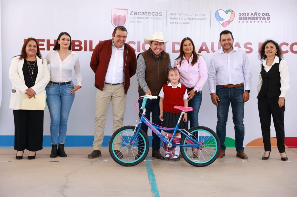 La Directora del Instituto Zacatecano para la Construcción de Escuelas (Inzace), Laura Elvia Bermúdez Valdés, explicó que la obra incluyó la rehabilitación de siete aulas con nuevos pisos, cancelería, aplanados, pintura, instalaciones eléctricas, impermeabilización y mobiliario por 294 mil 064.20 pesos, lo que garantiza un entorno digno para el aprendizaje.