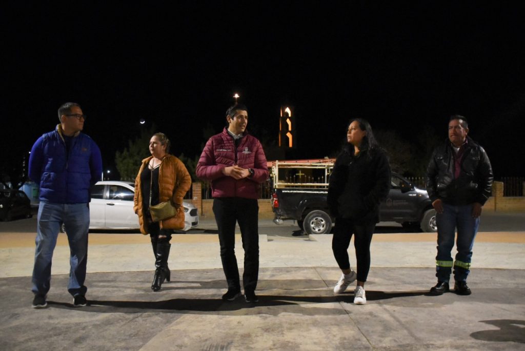Una primera entrega y a la vez supervisión del buen funcionamiento del renovado alumbrado público, lo hizo en la comunidad de La Luz, en la región de Casa Blanca, donde, en compañía de Isidra López y Norma Bernal, líderes de la localidad, y de Javier Soria Hernández, titular de la Secretaría de Servicios Públicos, constató que la plaza del lugar está perfectamente iluminada con esta nueva tecnología, de las llamadas “energías limpias”.