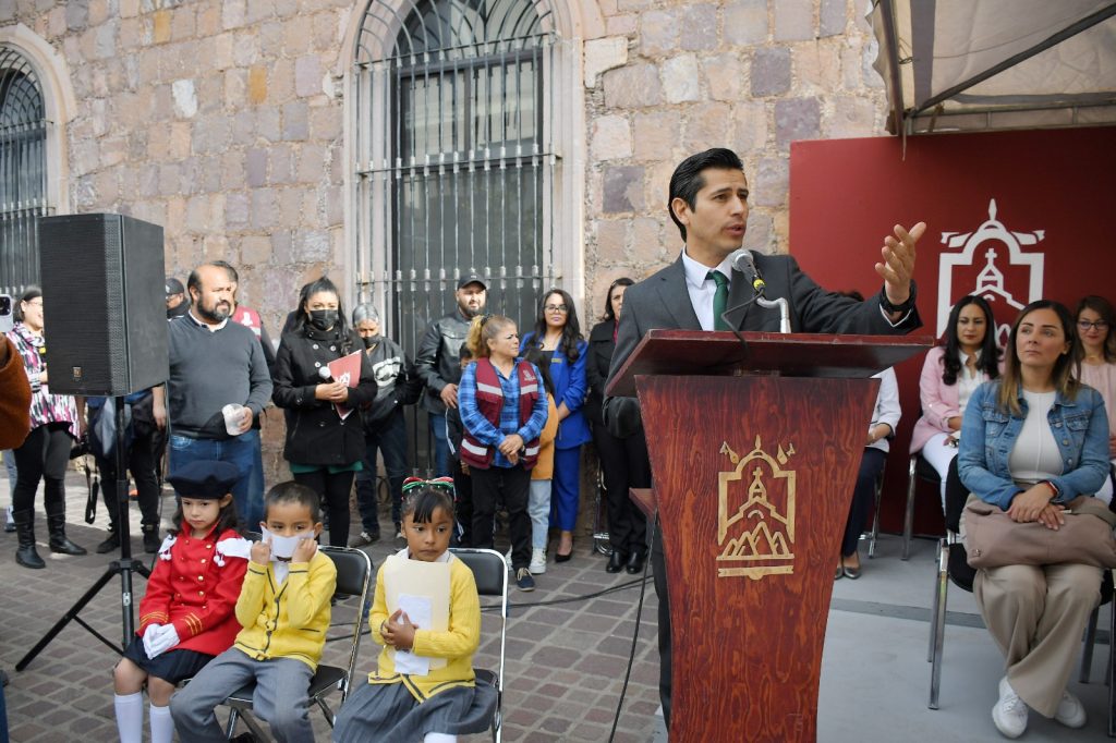 Fue frente a la Presidencia Municipal de Guadalupe, sobre la Avenida Heroico Colegio Militar, donde cientos de niños y niñas alumnos de educación Preescolar, participaron en este acto cívico en conmemoración a nuestro lábaro patrio.