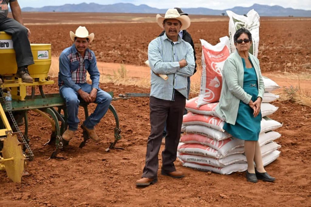 El programa incluye fertilizante gratuito, un derecho constitucional, entregado a todos los beneficiarios de la semilla, que lleva ya 18 mil de 30 mil toneladas distribuidas en Zacatecas.