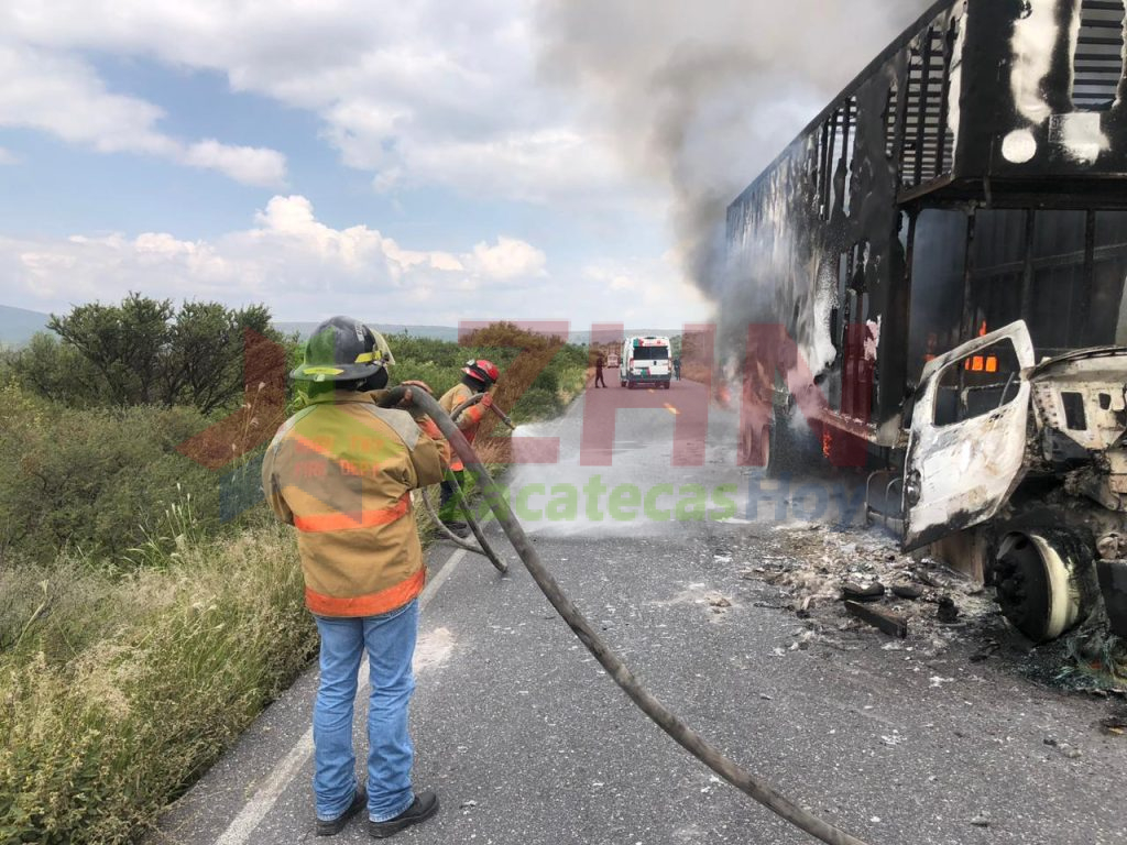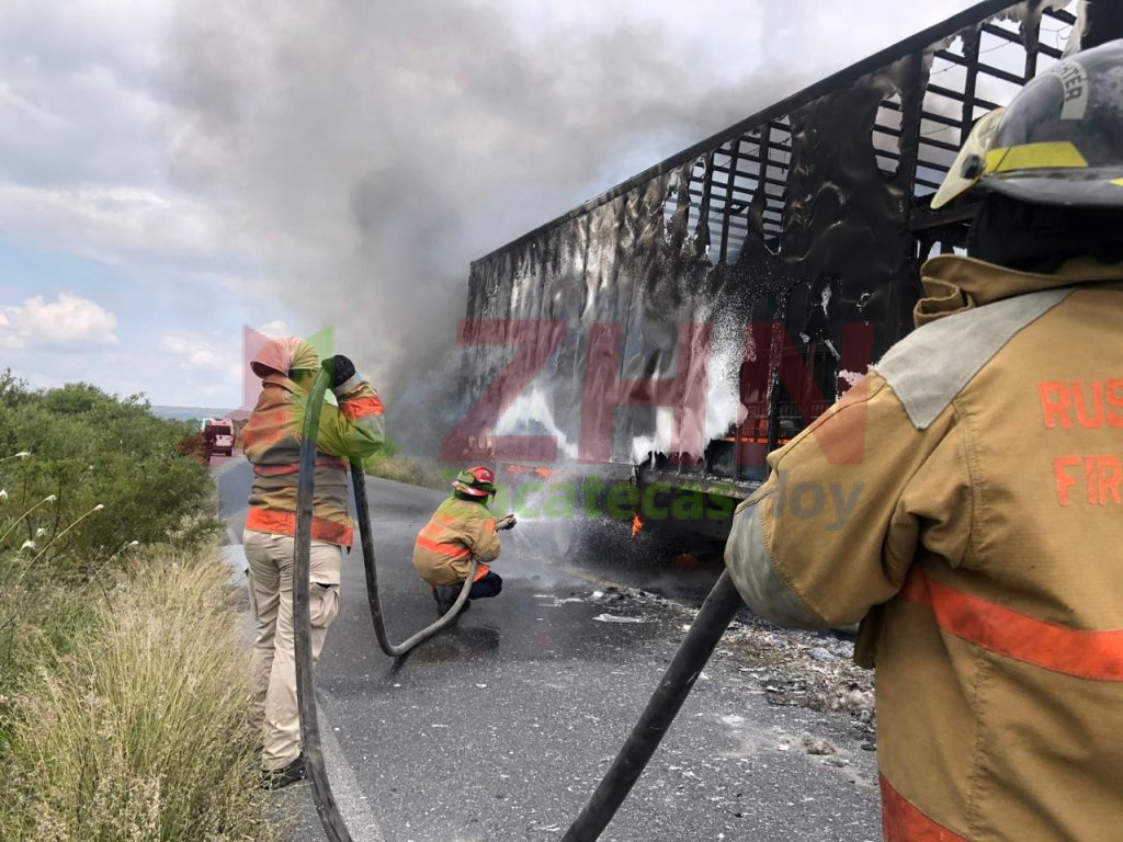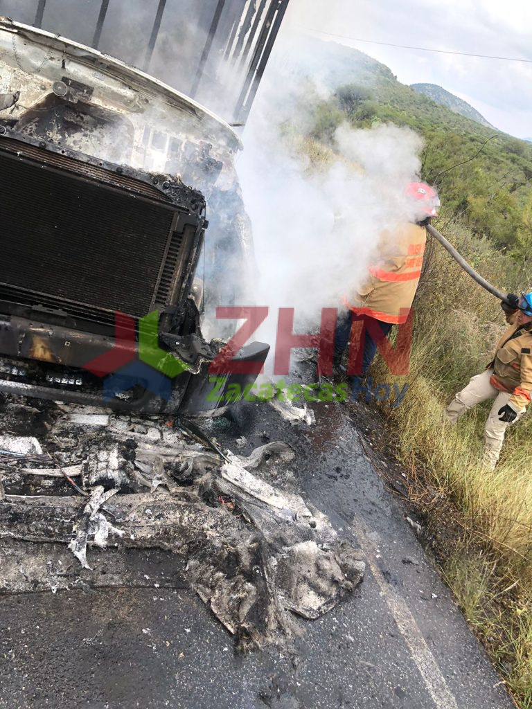 Villanueva, Zac.- La Mesa Estatal de Construcción de Paz y Seguridad informa que el incendio del tractocamión registrado sobre la carretera federal número 54, a la altura del poblado Laguna del Carretero, en el municipio de Villanueva, se originó a causa de una falla eléctrica en la unidad.