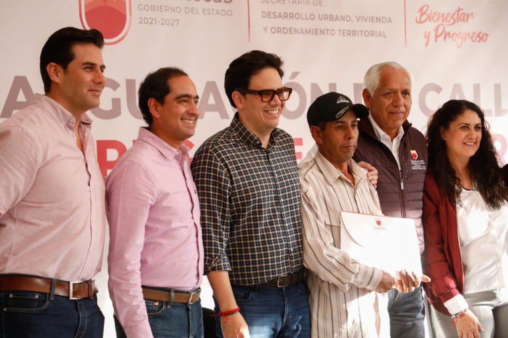 El Alcalde José Saldívar destacó estas acciones que emprende el Gobernador David Monreal Ávila, tanto en la pavimentación de calles como en la certeza de la propiedad, con las que se eleva la calidad de vida de las familias, pero que también mejoran el entorno y la regeneración del tejido social.