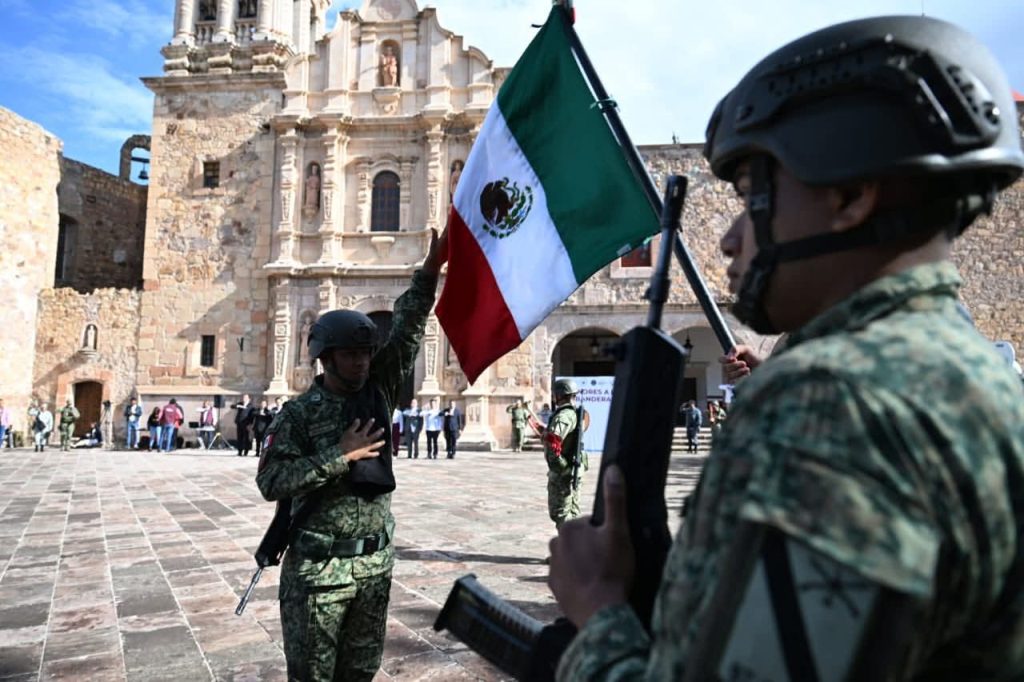 Sombrerete, Zac.– El Gobernador de Zacatecas, David Monreal Ávila, encabezó esta mañana en el Pueblo Mágico de Sombrerete la ceremonia de honores a la bandera, acto que estuvo acompañado por la sesión de la Mesa Estatal de Construcción de Paz.