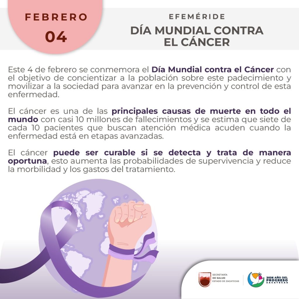 Cada 4 de febrero, se conmemora el Día Mundial contra el Cáncer, con el objetivo de concientizar a la población sobre este padecimiento y movilizar a la sociedad para avanzar en la prevención y control de esta enfermedad.