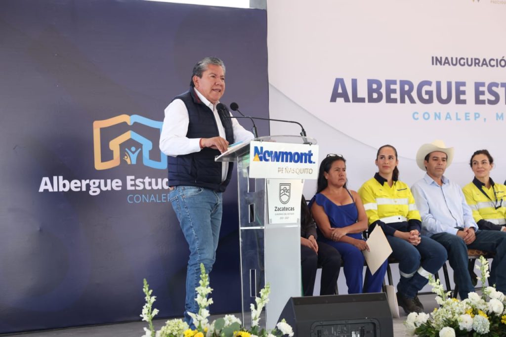 Mazapil, Zac.- En una acción que demuestra la colaboración y esfuerzos a favor de la educación y del desarrollo del semidesierto zacatecano, el Gobernador David Monreal Ávila inauguró la ampliación del Albergue Estudiantil del Conalep Plantel Mazapil, obra construida y donada por la empresa Newmont Peñasquito.