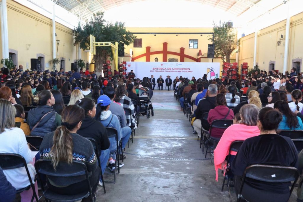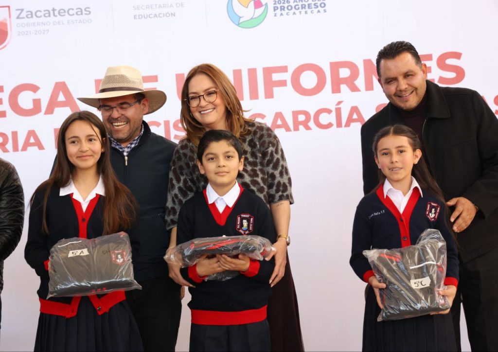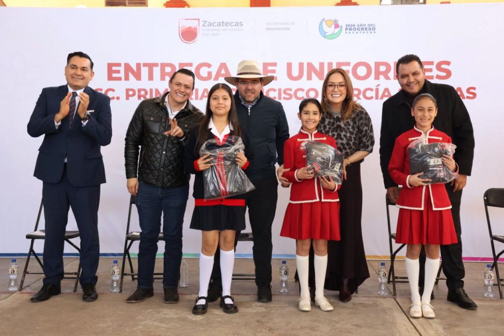 Jerez, Zacatecas. — En el marco de la entrega de uniformes escolares en la Escuela Primaria Francisco García Salinas, la senadora Vero Díaz, integrante de la Comisión de Bienestar, anunció una inversión aproximada de 600 mil pesos para este plantel a través del programa federal La Escuela es Nuestra, que se aplicará durante el ejercicio fiscal 2026.