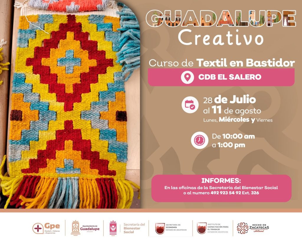 Guadalupe, Zac.- Con el propósito de fomentar la creatividad, el aprendizaje de oficios tradicionales y el sano esparcimiento, durante el periodo vacacional, el Gobierno de Zacatecas, encabezado por el mandatario estatal David Monreal Ávila, invita a niñas, niños, jóvenes y adultos a formar parte de los Cursos de Verano Artesanales “Guadalupe Creativo”, un esfuerzo conjunto que impulsa el desarrollo comunitario, a través de actividades productivas y recreativas.
