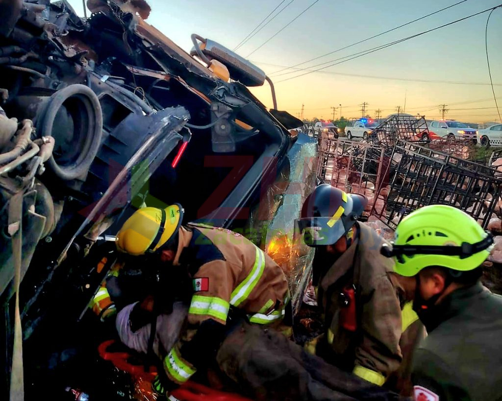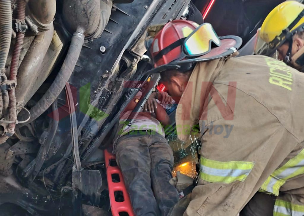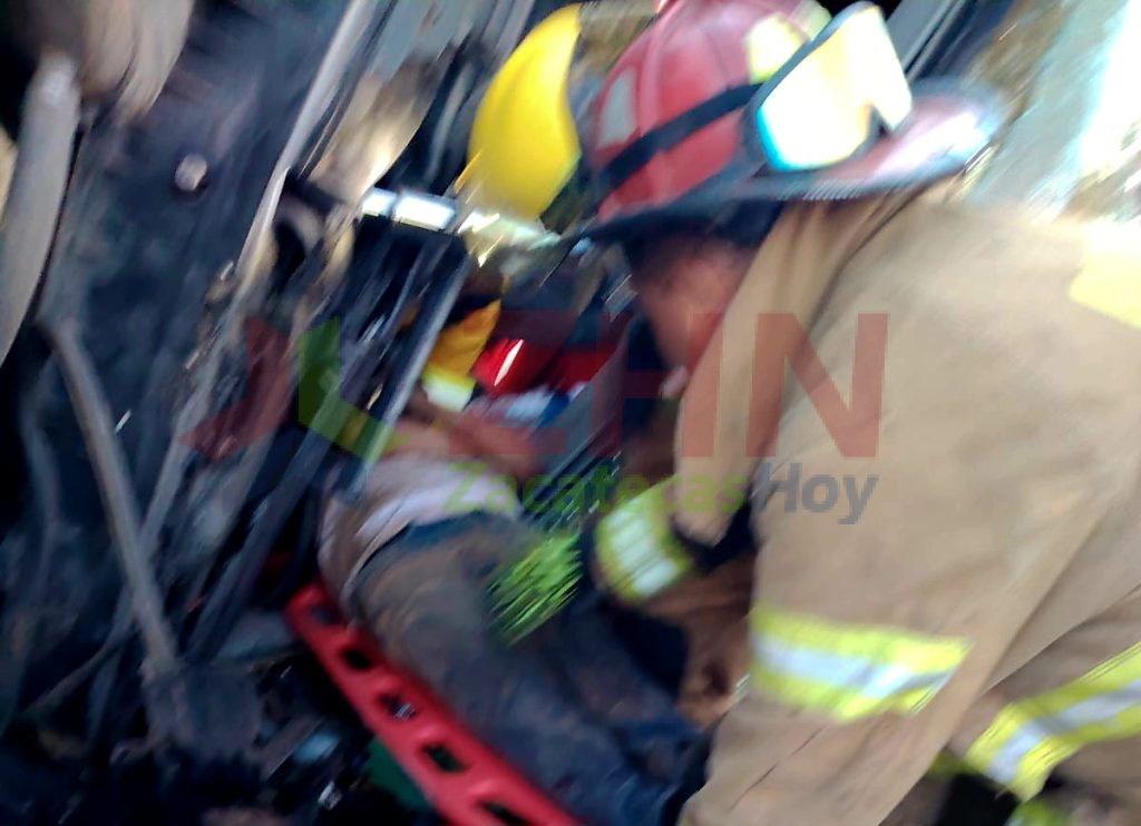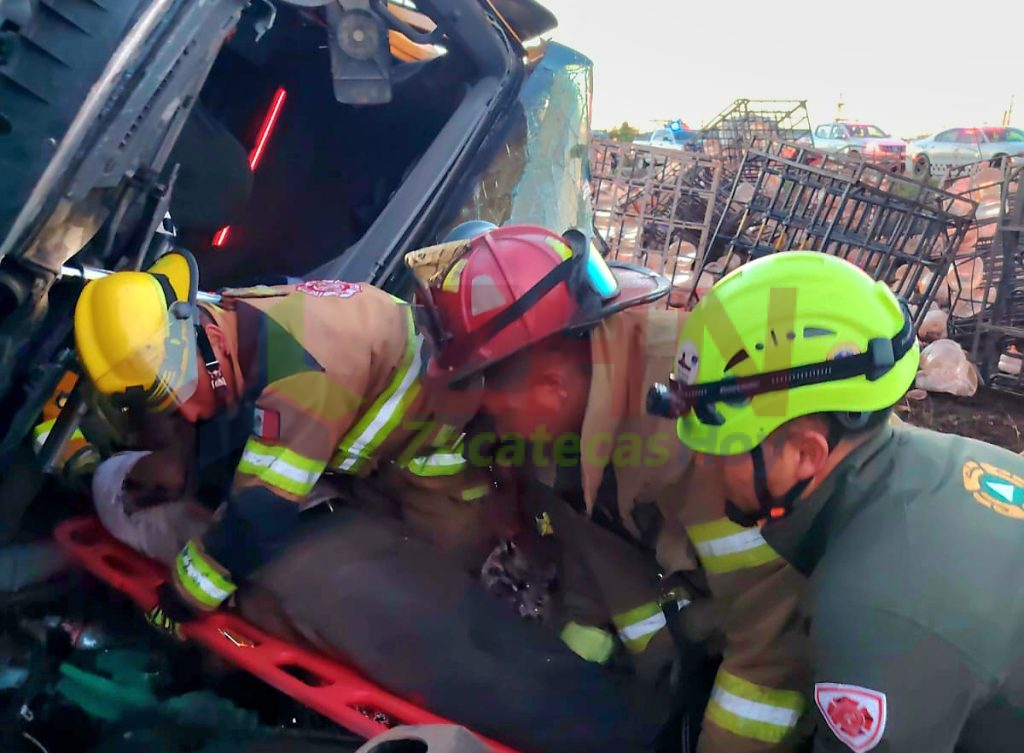 Guadalupe, Zac.- Elementos de Bomberos, rescatistas y paramédicos de la Coordinación Estatal de Protección Civil (CEPC), bajo la dirección de Jorge Gallardo Álvarez y el Capitán Jesús Velázquez, atendieron un accidente carretero tipo salida de camino con volcadura registrado sobre la carretera federal 45, en el tramo de Trancoso a Guadalupe, a la altura de la zona conocida como Yusa.