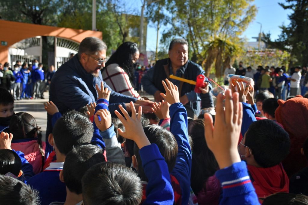 Guadalupe, Zac.- Cumpliendo con la promesa de llevar alegría y esperanza a los alumnos de las diferentes instituciones educativas del Municipio a través de Posadas Navideñas, el personal del Ayuntamiento de Guadalupe, que encabeza Julio César Chávez Padilla, ha recorrido decenas de instituciones educativas con la entrega de bolos y juguetes para miles de estudiantes de nivel básico.